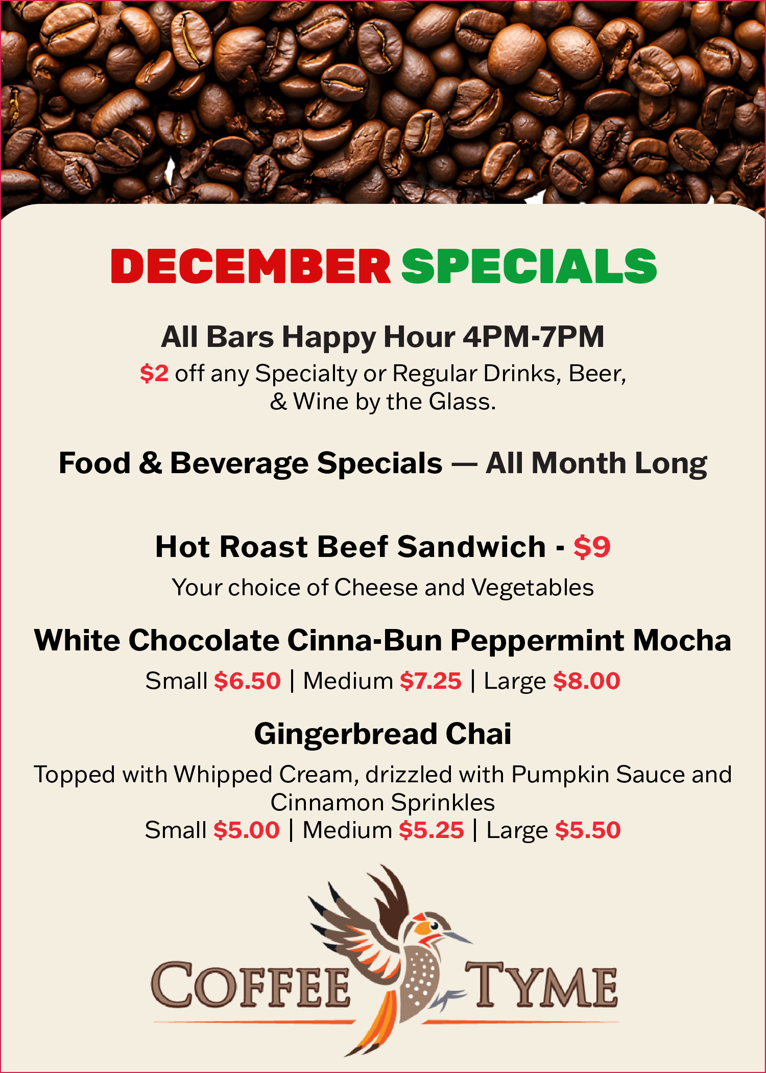 At the GCCR, it is ALWAYS Coffee Tyme! Stop by Coffee Tyme café from on the Casino Floor and enjoy your favorite hot and cold drinks, whipped up to perfection. Hungry but want to keep playing? You can have breakfast burritos, cheeseburgers, hotdogs, deli sandwiches and more — delivered right to your slot machine! OPEN 24 HOURS